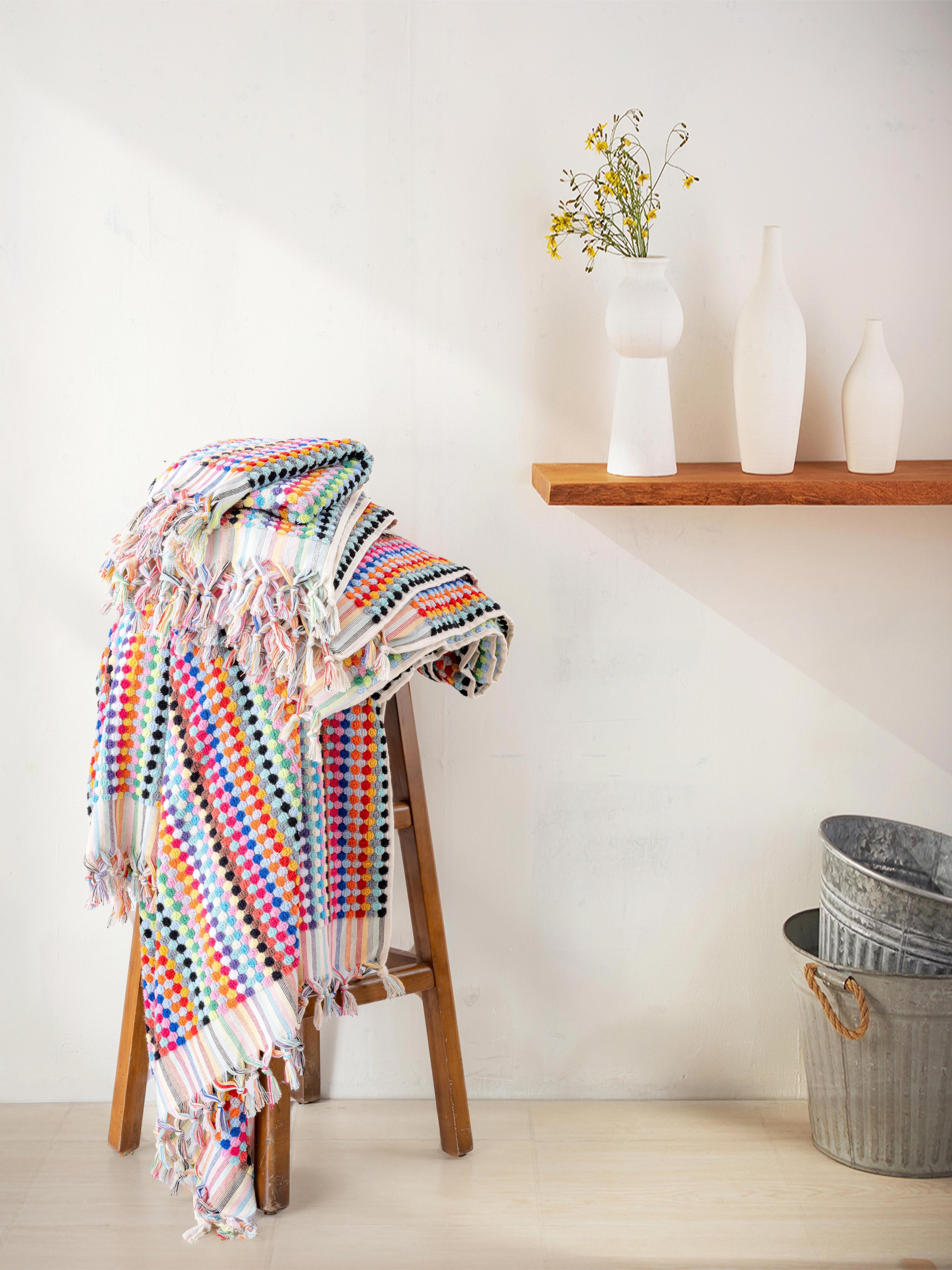 Stribet badehåndklæde multifarvet (uden frynser)Stribet badehåndklæde multifarvet (uden frynser)